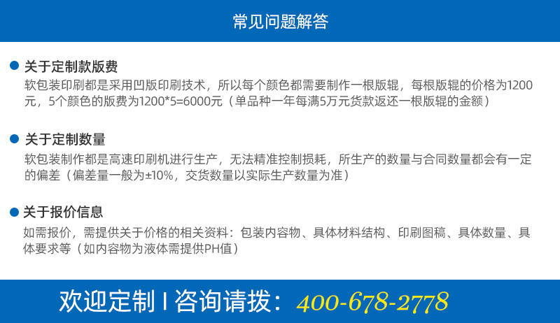 只要用了我们的包装,不管是包装膜的问题还是包装机的问题,都是我们的问题!只要有质量问题,马上召回,不管有多远!